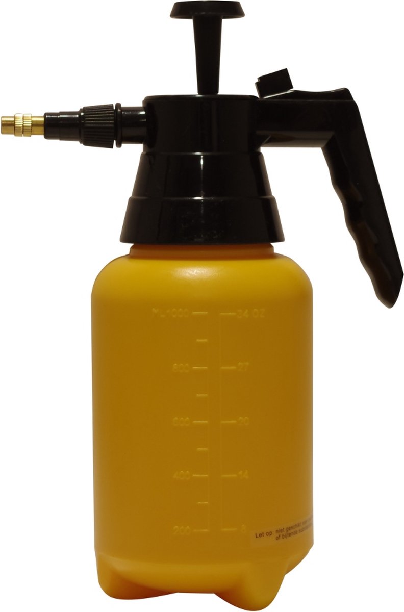 Dit is de universele Hendrik Jan drukspuit voor in huis, in de kas, op het balkon of zelfs in de tuin voor het jonge gewas. De sproeimond is eenvoudig traploos te verstellen van een volle straal tot een fijne sproeinevel. Deze Hendrik Jan plantenspuit is door middel van de grote vulopening zo weer bijgevuld. Het sproeistuk is gemaakt van hoogwaardig messing. Niet geschikt voor zuuroplossingen of gerelateerde zuurhoudende substanties. Inhoud 1 liter.