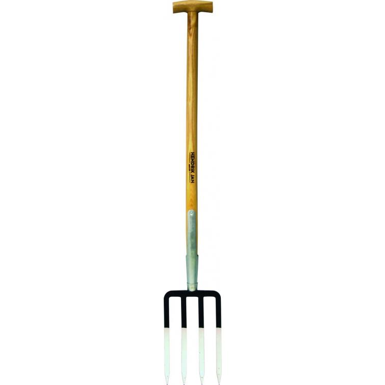 Deze Hendrik Jan viertands gesmede spitvork heeft tanden met een lengte van 26 cm en is bedoeld voor het omspitten van de echt zware, kleiachtige grondsoorten. De vork heeft voor de stevigheid een halflange dul (de metalen steelhouder). De steel heeft een lengte van 85 cm en is gemaakt van taai en sterk, maar toch voldoende buigzaam, essenhout met het 100% FSC keurmerk. Producten met FSC keurmerk zijn afkomstig uit bossen waar men zich houdt aan strenge ecologische en sociale productienormen voor verantwoord en duurzaam bosbeheer.