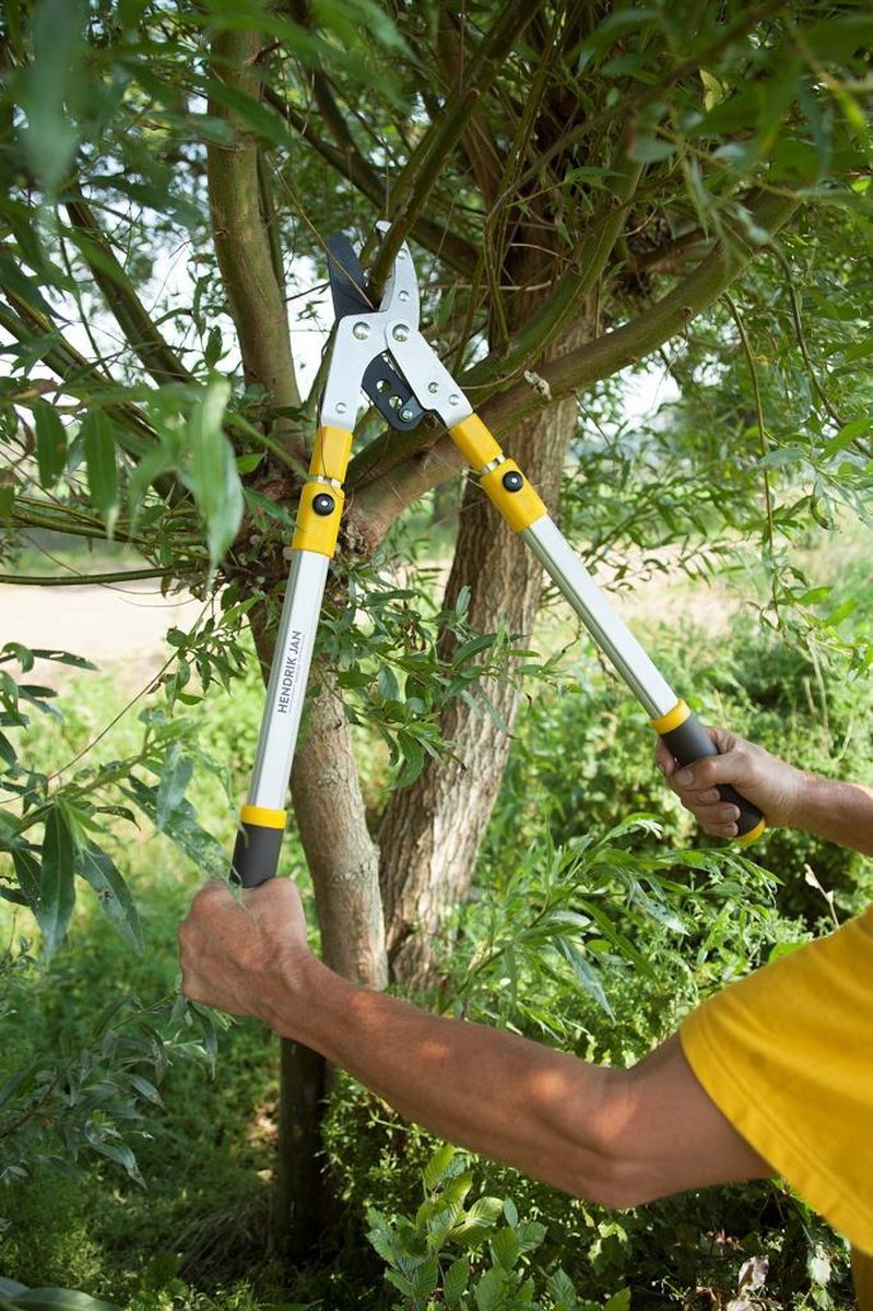 De takkenschaar van Hendrik Jan is licht van gewicht en daardoor comfortabel in gebruik, ook bij langdurige snoeiklussen. Je snoeit met de aambeeld techniek, waardoor deze takkenschaar voornamelijk geschikt is voor dode takken en stengels. Het model is uitschuifbaar, waardoor de totale lengte kan worden aangepast aan de situatie. Ingeschoven is de takkenschaar 660 millimeter lang. Volledig uitgeschoven bedraagt de lengte 990 millimeter. Zo is het ook mogelijk om takken op lastig bereikbare plekken te snoeien zonder gebruik te maken van een trap of opstapje.