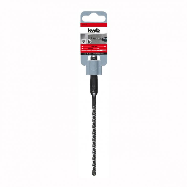 Hamerboren, opnameschacht SDS-plus, zelfcentrerende boorpunt, bij hoge temperatuur gesoldeerd, meervoudige spiraal voor een optimale boorstofafvoer, minimale wrijving met de wand en minimale warmteontwikkeling, geoptimaliseerd voor trillingen, gecertificeerd door PGM (de Duitse Prüfgemeinschaft Mauerbohrer), voldoet aan de eisen van het Deutsche Institut für Bautechnik.