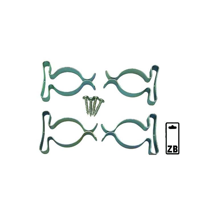 Skandia gereedschapsklem. Een klembereik van 28 mm en een inhoud van 4 stuks op kaart. Deze klemmen worden gebruikt voor het ophangen van diverse werktuigen, zoals gereedschap, tuingereedschap, andere apparatuur en slangen. De uitvoering is glansverzinkt verenstaal. Compleet met bijpassende spaanplaatschroeven.
