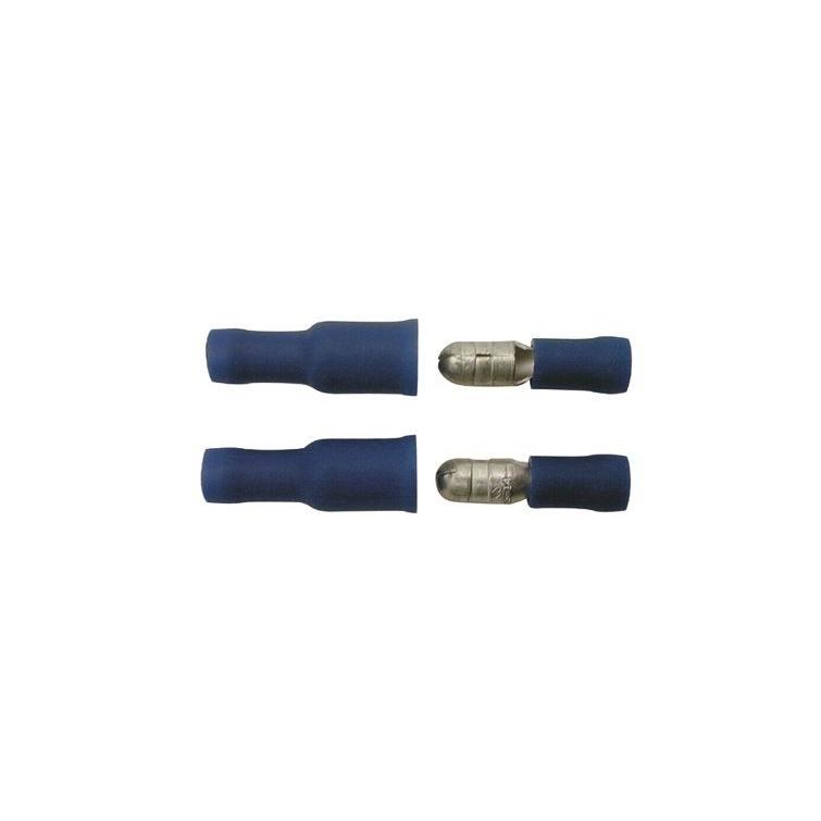 Skandia kabelschoen, kleur blauw, geschikt voor elektriciteitsdraad van 1,5 t/m 2,5 mm², assortiment, passend op onder andere een ronde steker M5 en een ronde stekerhuls M5, inhoud 10 stuks. Kabelschoenen worden onder andere veel gebruikt in huishoudelijke elektrische apparaten, auto's, motoren en boten om elektrische verbindingen te maken. Veel kabelschoenen worden speciaal toegepast bij deze verbindingen omdat ze weer eenvoudig zijn los te koppelen. Een kabelschoen wordt bevestigd met een kabelschoentang (krimptang). Met deze kabelschoentang wordt de huls van de kabelschoen, waarin de elektrische draad wordt gestoken, plat geperst (krimpen), waardoor een verbinding ontstaat tussen de draad met het kabelschoen.