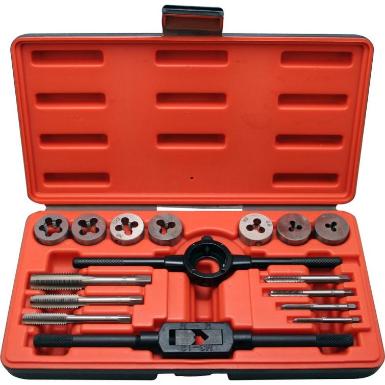 Skandia 16-delige metrische snijgereedschapset, geschikt voor het snijden van binnen- en buiten schroefdraad.